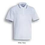 - Unisex Pique Knit Polo With Striped Collar & Cuffs Includes Affixed Pocket