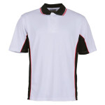 - Ladies Cut Panel Polo With Piping And Striped Contrast Collar.